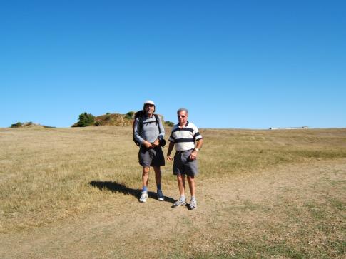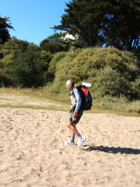 Benoit me rejoint en voiture à Ville-es-Martin, on se donne rendez-vous à St Marc. Le nouveau front de mer est très réussi. C'est le chemin côtier, je dois retrouver Pierrot à Gavy. Effectivement il m'attend, on se congratule, puis on termine le sentier, pour arriver à la Courance.