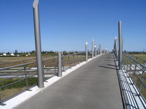 Je reprends le chemin en direction de 'Loncé' pour retouver la piste cyclable. Je prends la passelle toute neuve dans l'espoir qu'un camion grue ne viendra pas l'arracher aujourd'hui!